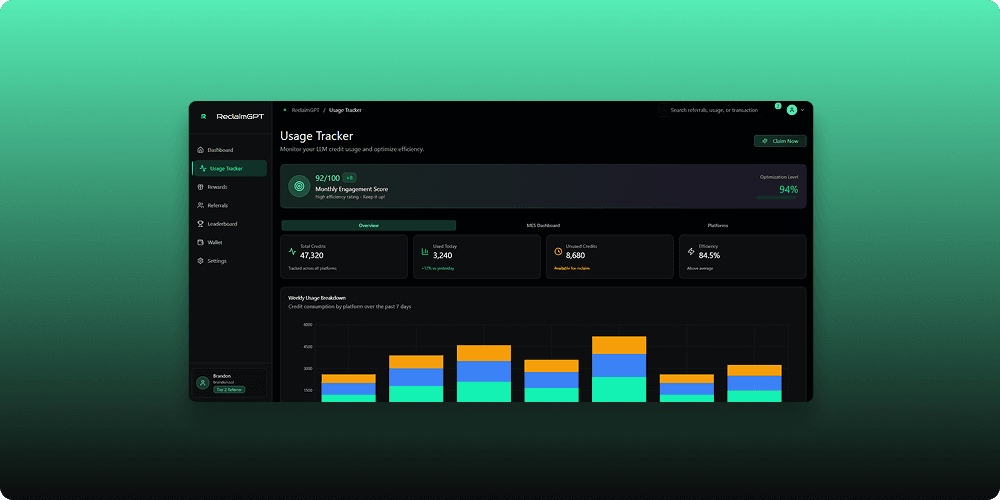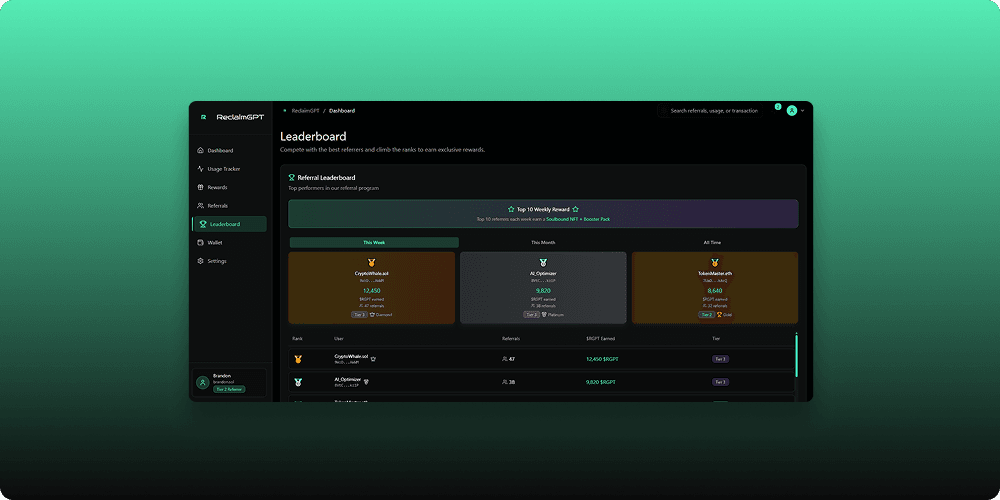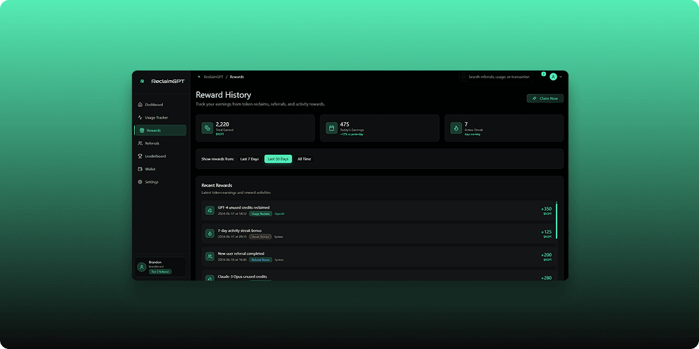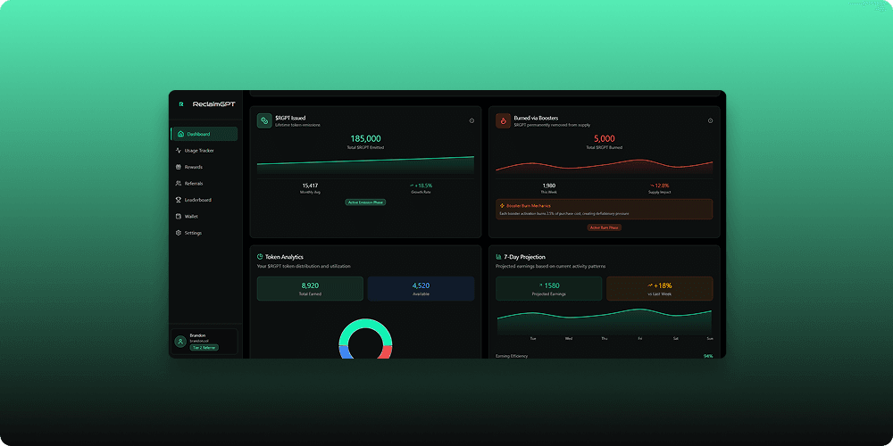 ReclaimGPT is an AI-DePIN (Decentralized Physical Infrastructure Network) browser extension that empowers users to reclaim value from their digital activity and AI usage. ReclaimGPT connects to major LLMs like ChatGPT, Claude, and Gemini, tracking token usage and surfacing valuable, often wasted activity. Users are rewarded for otherwise unused compute cycles, idle data, and high-intent AI interactions—turning passive behavior into active yield. With an integrated referral system, Web3 wallet support, and built-in analytics, ReclaimGPT enables a new model of personal data ownership and decentralized monetization. The extension is lightweight, user-friendly, and built to work in the background while preserving user privacy. As AI usage surges, ReclaimGPT introduces a scalable, equitable way to return value to everyday users in the AI economy.