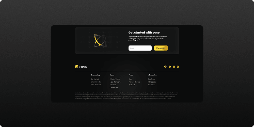Vestra is a forward-thinking platform built at the intersection of real estate and blockchain technology. The project was designed to modernize and democratize access to property investment by enabling fractionalized ownership of real-world assets through tokenization on the blockchain.