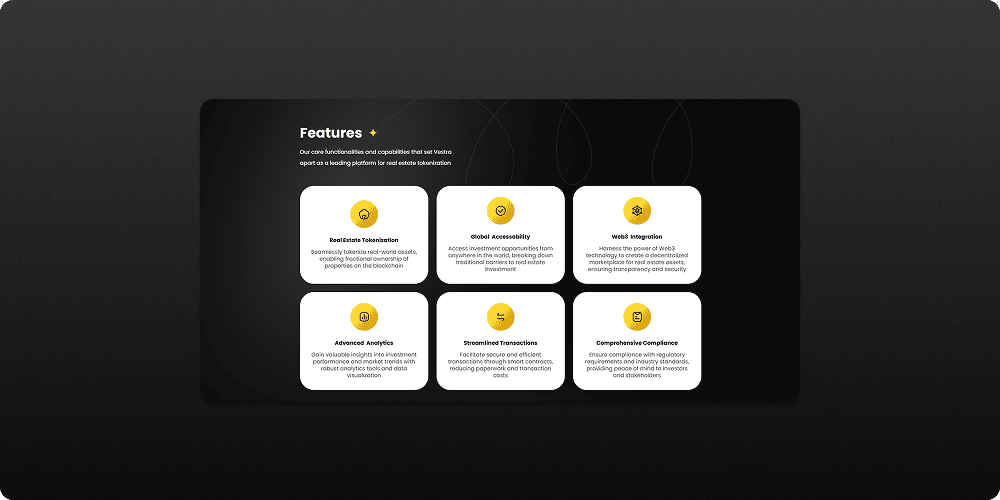 This sleek and responsive Web3 interface allows users to explore real estate opportunities with full transparency, reduced friction, and global accessibility. Whether it's a luxury condo in Miami or a multifamily property in Austin, Vestra empowers users to invest in tokenized real estate with just a few clicks.